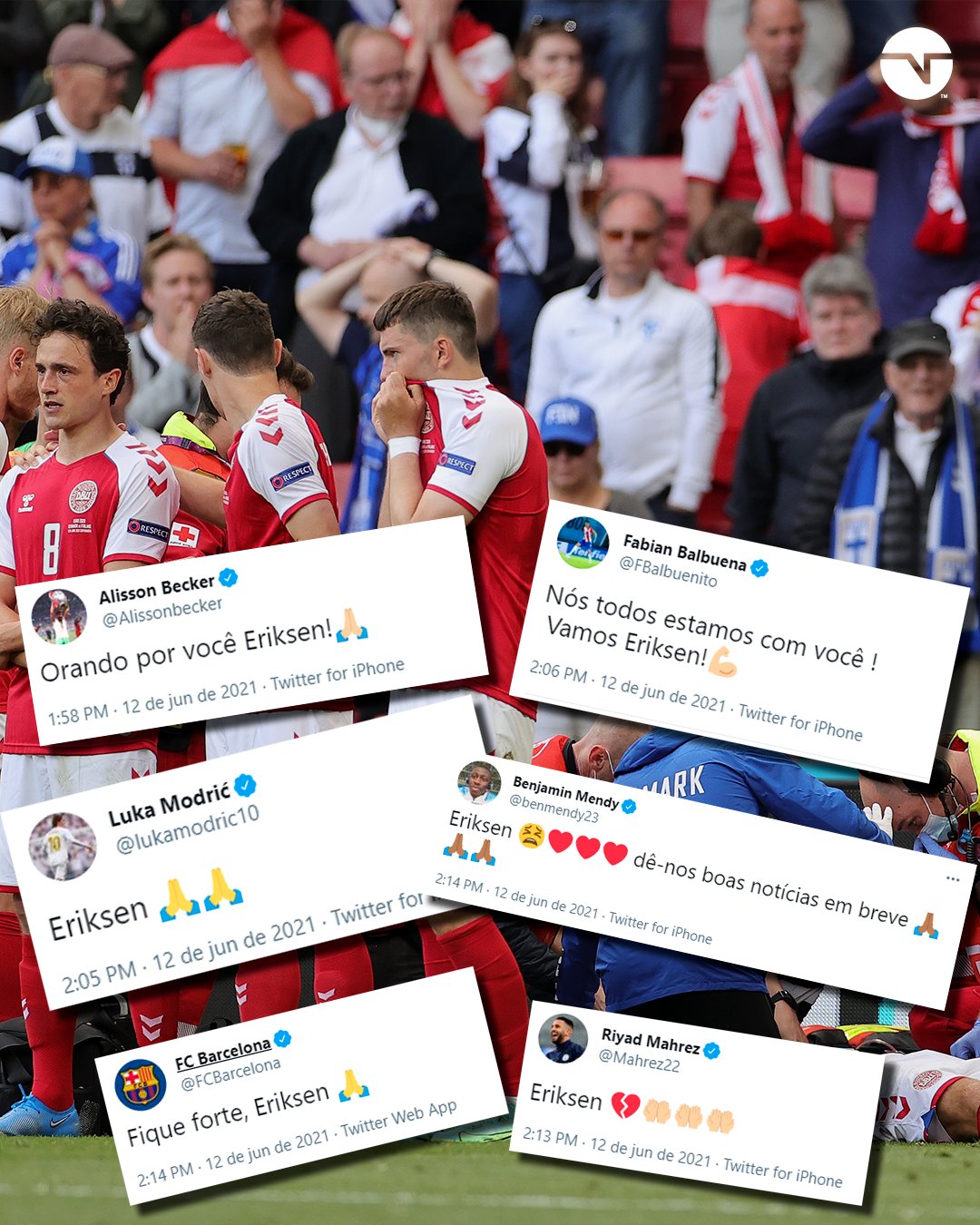 Football united in sending its overwhelming support to christian eriksen after the midfielder collapsed at euro 2020.the denmark star, 29, went to rec.